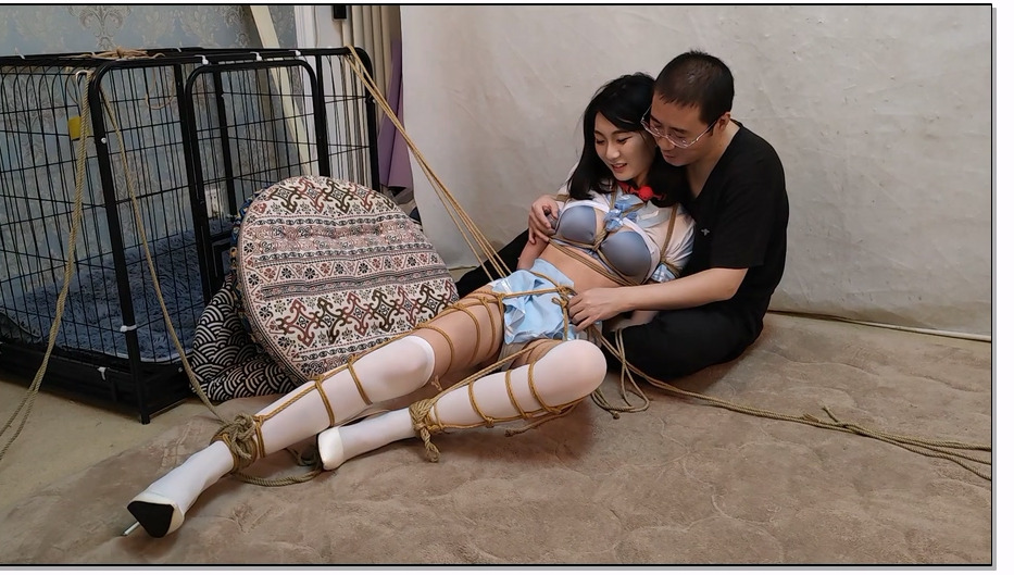 冷少与贝娘 情趣服轮滑鞋五花捆绑单腿吊放置