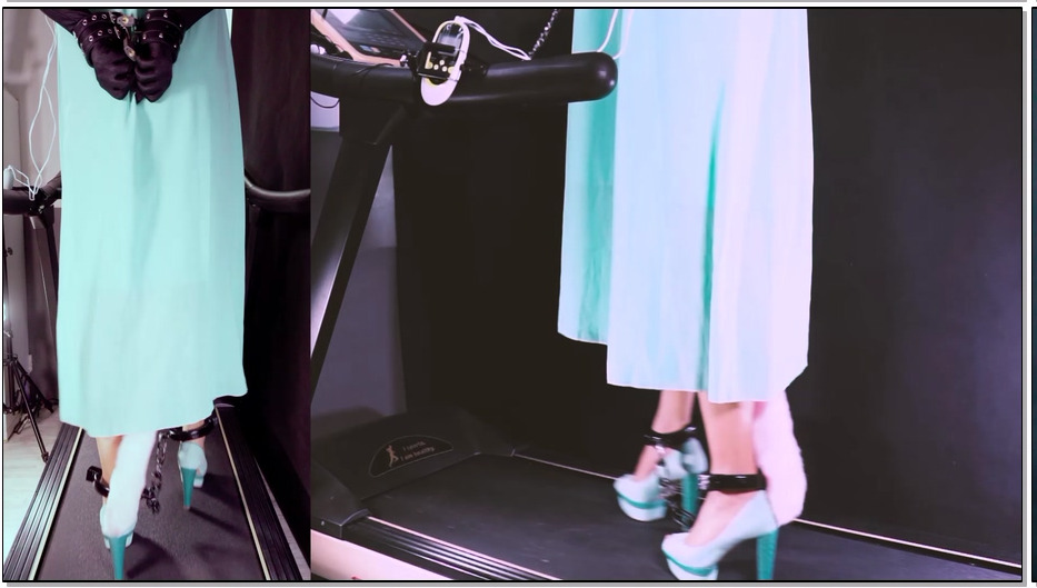 高跟遇到跑步机 3公斤重镣与皮具禁锢着的鱼嘴高跟在跑步机上