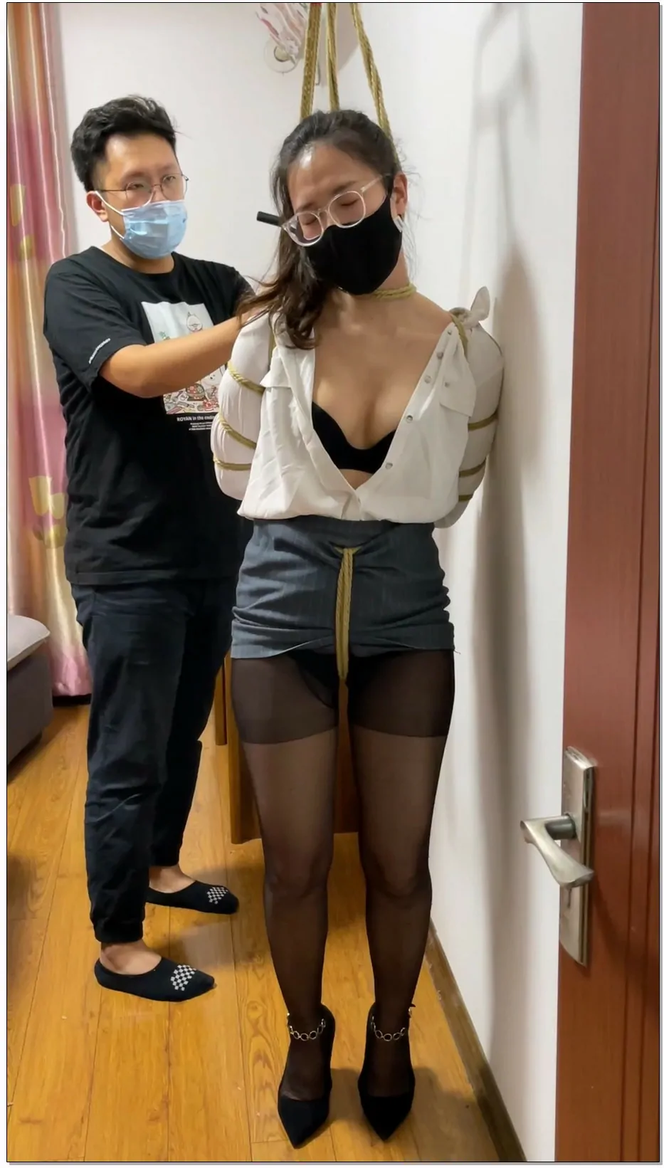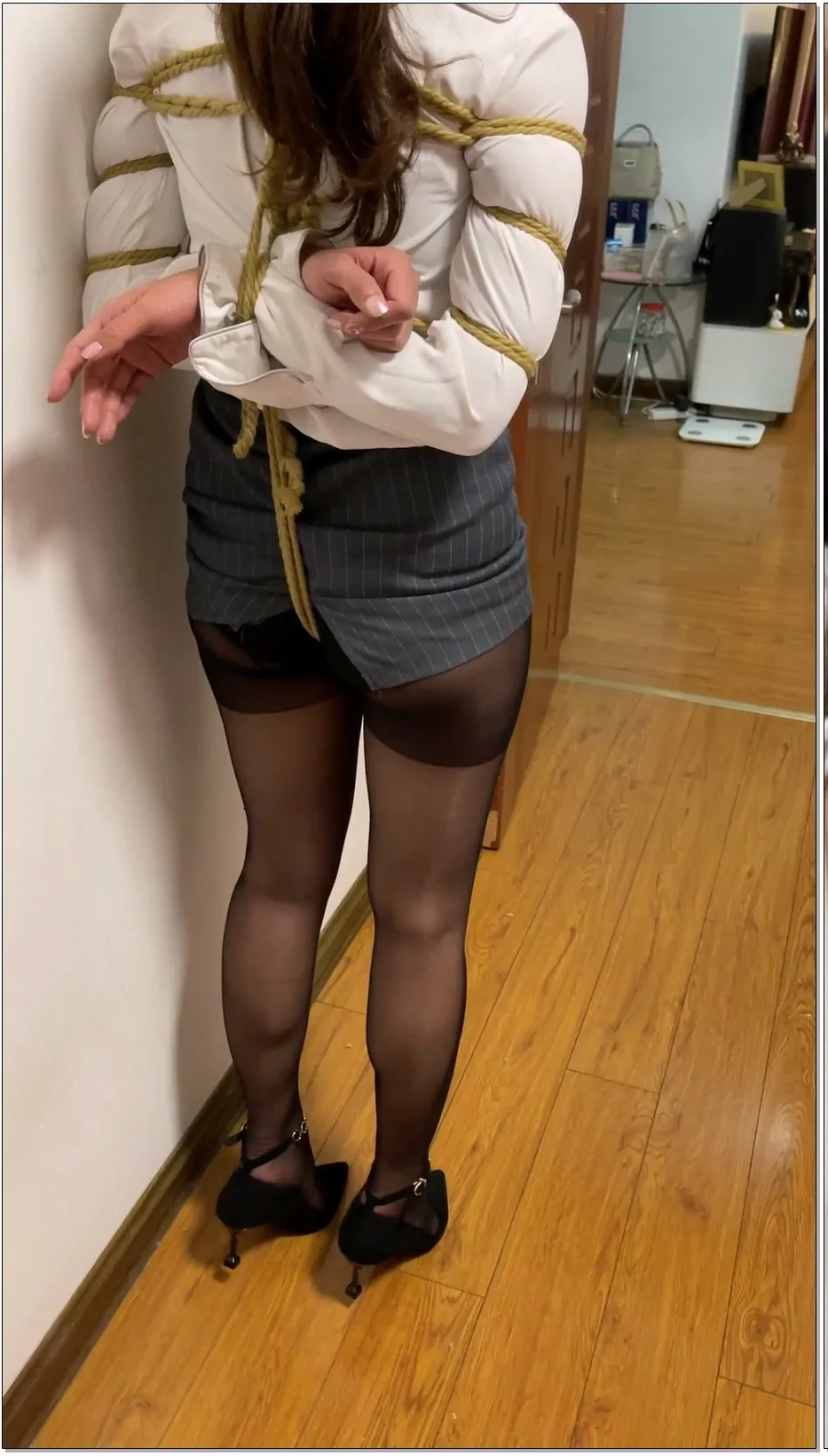 网友原创 我的媳妇 肉丝高跟、全身紧缚、胶带包头、高强度无休止、挠痒痒、电击片