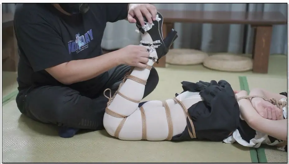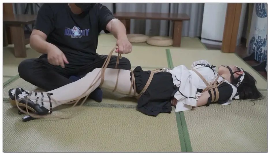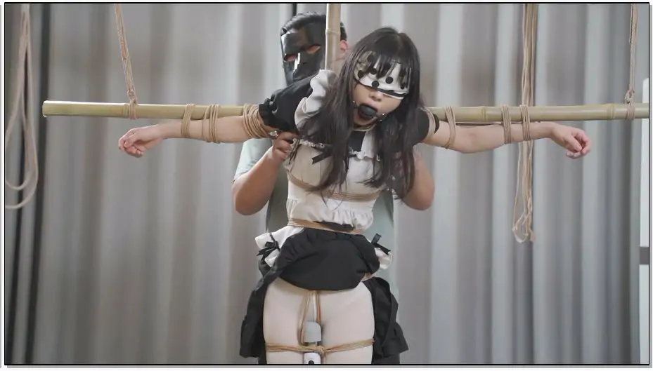 象人工作室 女仆装白丝小0驷马捆绑,最后绑到十字架上-第1集