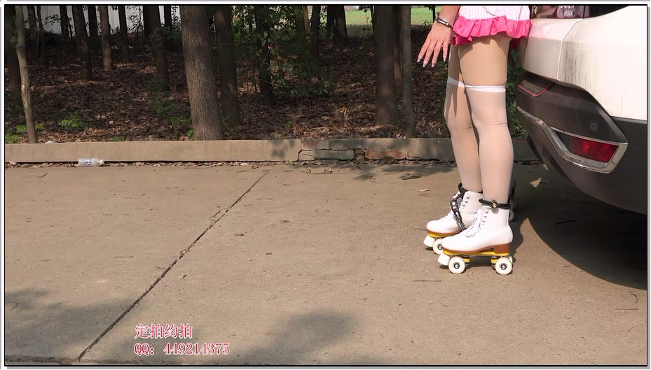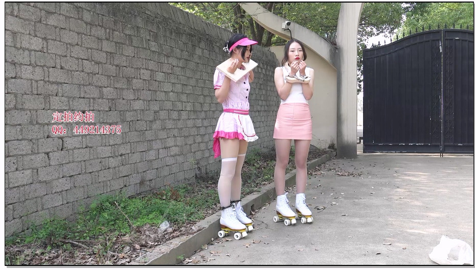 子衿原创 菲菲妍如室外镣铐轮滑轮竞赛,带木枷脚镣口球轮滑鞋行走