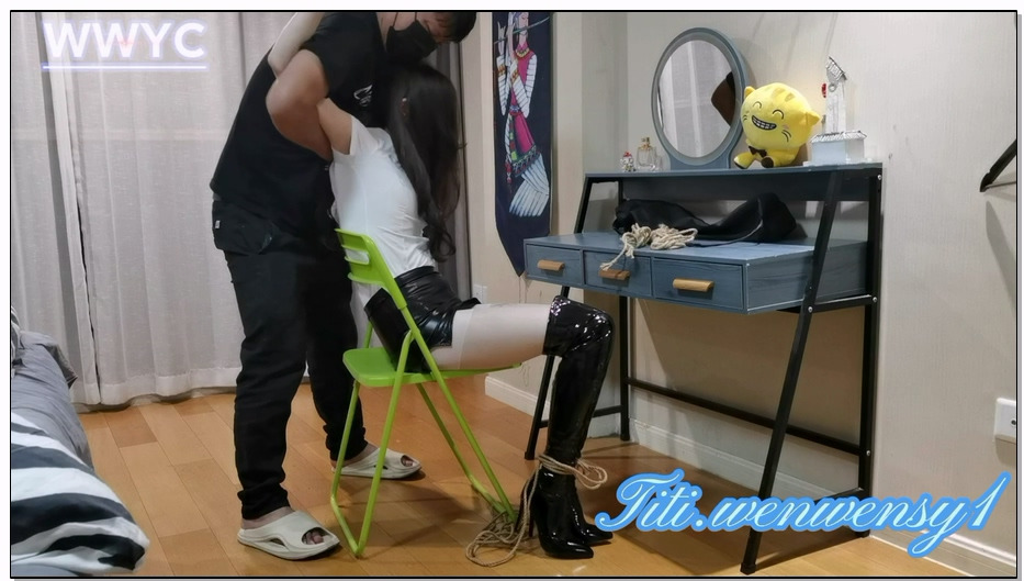 冷少与贝娘 死库水双马尾黑丝袜,花式驷马开腿捆绑调教