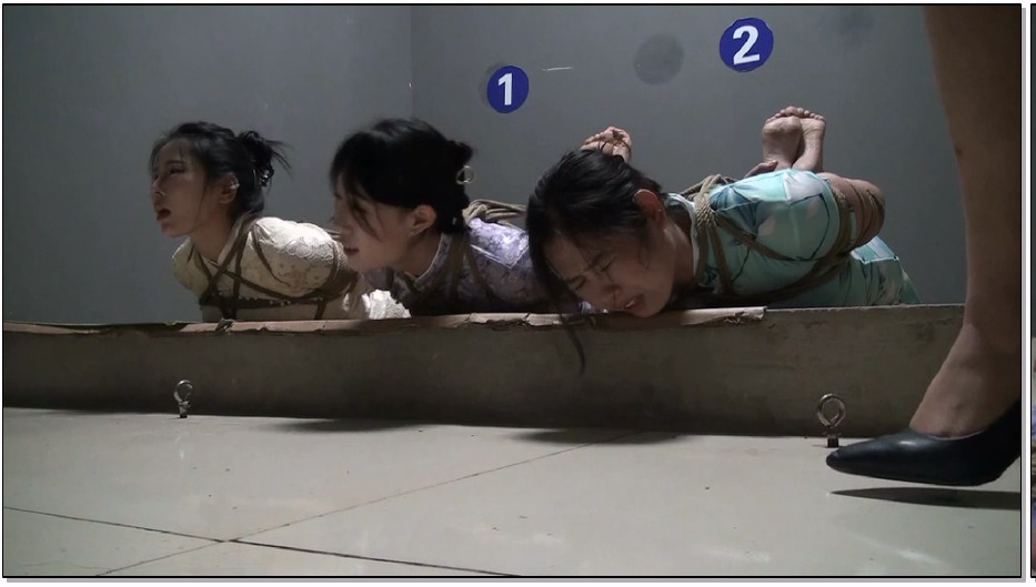 逍遥 美女卧底折磨03 黑丝美女盘腿团缚 绳子会自动收紧 变成最紧团缚 口球羞耻滴口水