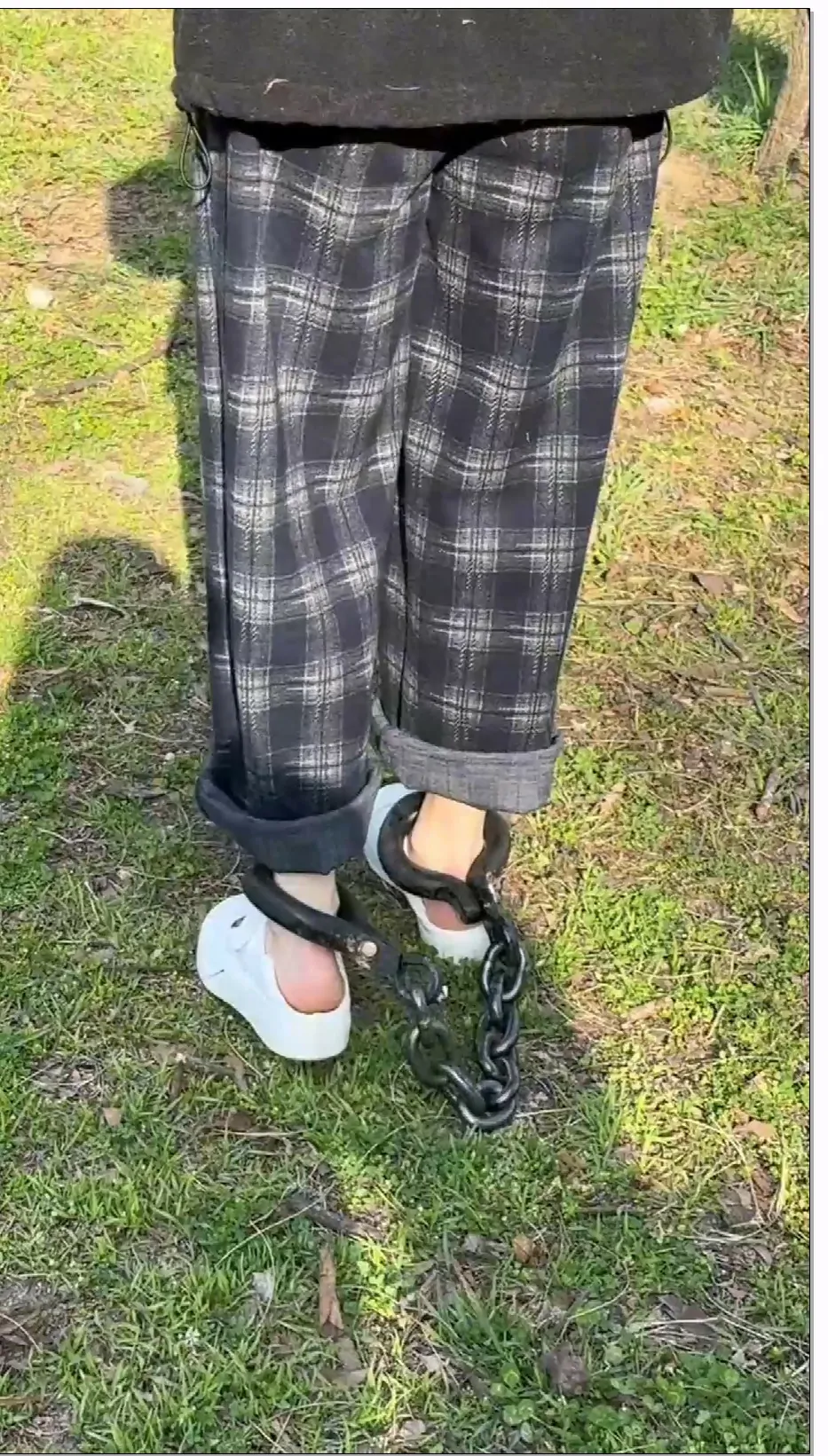 布莱恩 大学生妹子镣铐测评 椭圆不锈钢脚镣