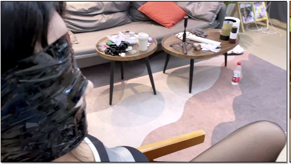 小雅 胶带与椅子的束缚,封嘴、封脸过程全有~第一次被小雅,深情地看着