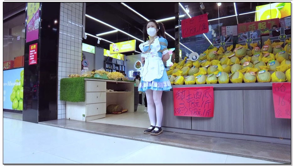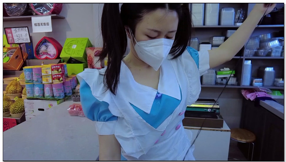 娜绳工作室 女仆青柠 M项圈,肛钩,脚铐,手铐。屁股上的肛钩又通过链子跟脖子