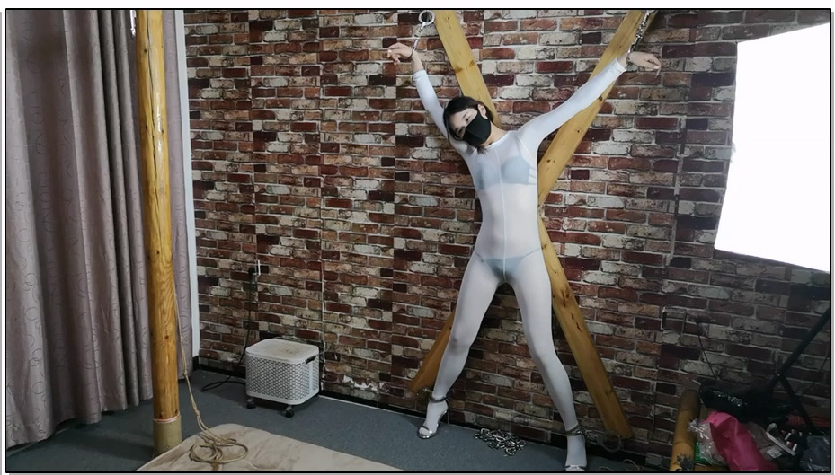 随心原创 小妍 儒贴网衣 项圈背铐 口伽鼻勾 短棍连接 膝盖跪地 抚摸 鞭打折磨