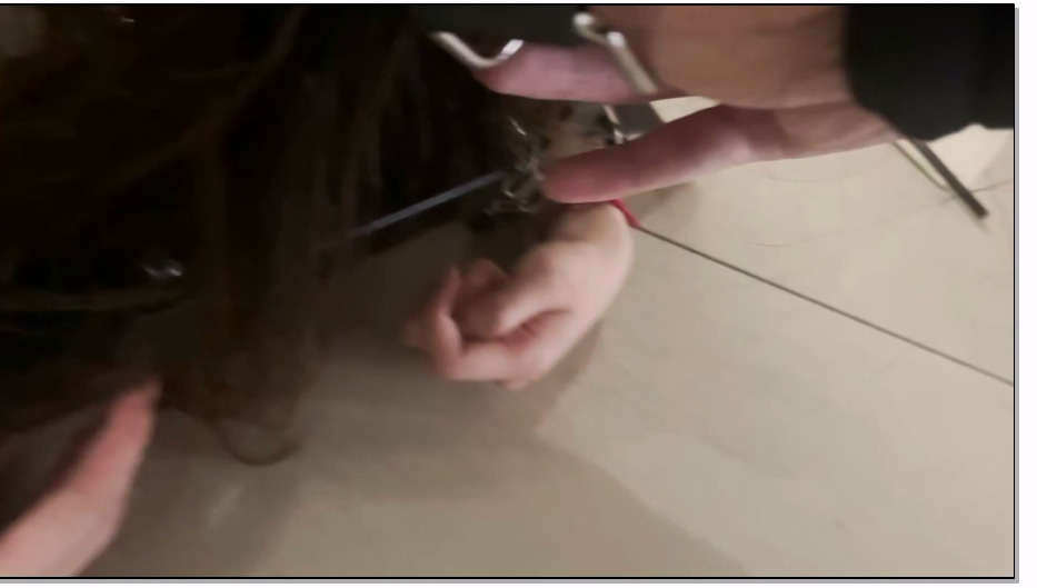 娜绳工作室 女仆青柠 M项圈,肛钩,脚铐,手铐。屁股上的肛钩又通过链子跟脖子
