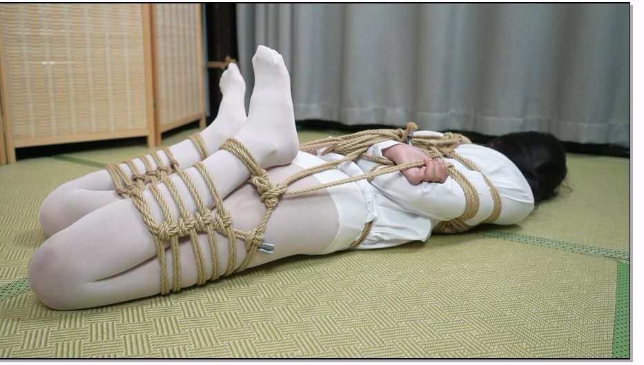 象人工作室 朝朝 白丝麻绳折腿捆绑放置挣扎!肉色肌肉贴封嘴封眼