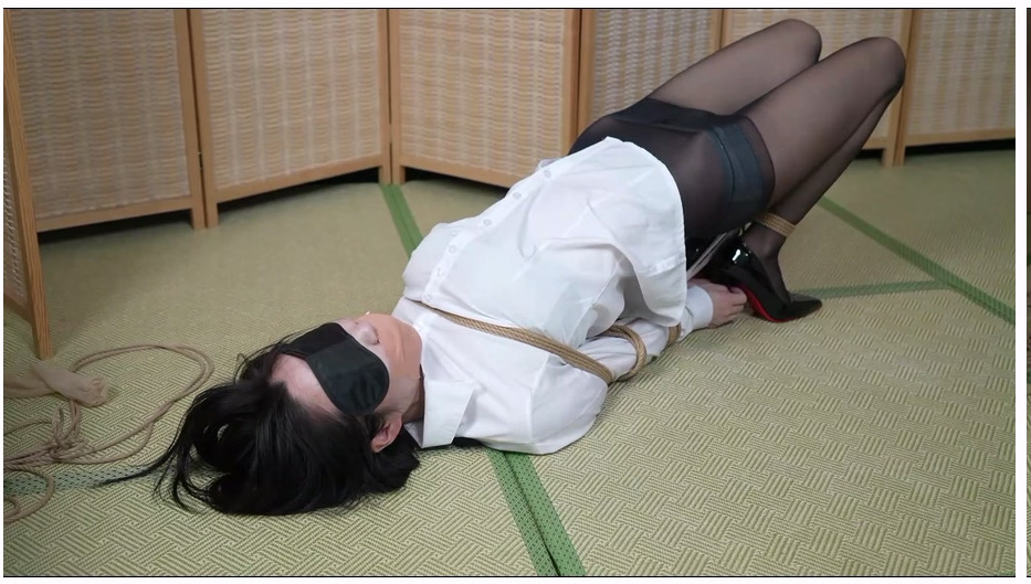 象人工作室 嗷嗷 白色长袖衬衣黑色长裤裤里肉丝,黑丝驷马捆绑