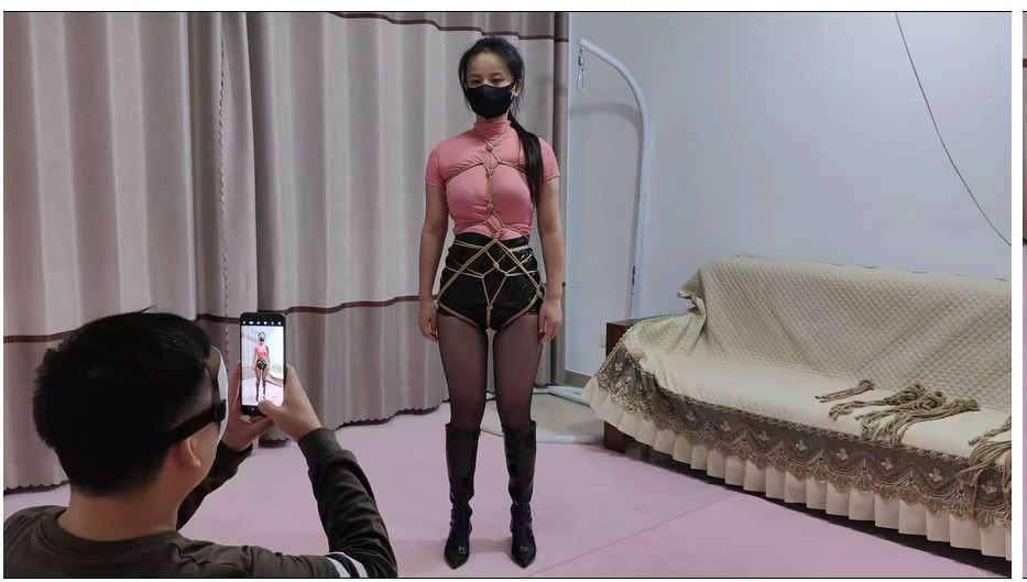 素人原创 长发飘飘晓影短靴亮丝紧缚双腿缚欧式直臀难受驷马跪走放置